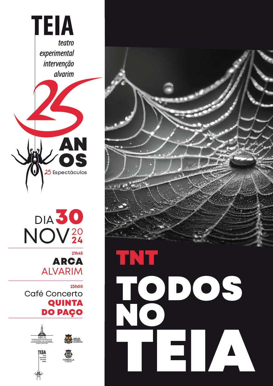 O TEIA – Teatro Experimental Intervenção de Alvarim, em parceria com a ARCA, nasceu em 1999 e desde então tem levado a palco um teatro criativo, experimental e comunitário, unindo diferentes expressões artísticas. Com uma forte aposta na itinerância e no intercâmbio cultural, o TEIA divulga o concelho de Tondela e a localidade de Alvarim, criando novos públicos e valorizando a partilha entre companhias teatrais, em Portugal e no estrangeiro. Além da criação e encenação de espetáculos amadores, o grupo investe na formação técnica em áreas como produção, som, luz e cenografia. O grande marco anual é o FESTA – Festival de Teatro de Alvarim, que se destaca pela diversidade artística e pela forma como proporciona ao público experiências únicas de participação e fruição cultural. Há 25 anos a construir palco, comunidade e identidade.